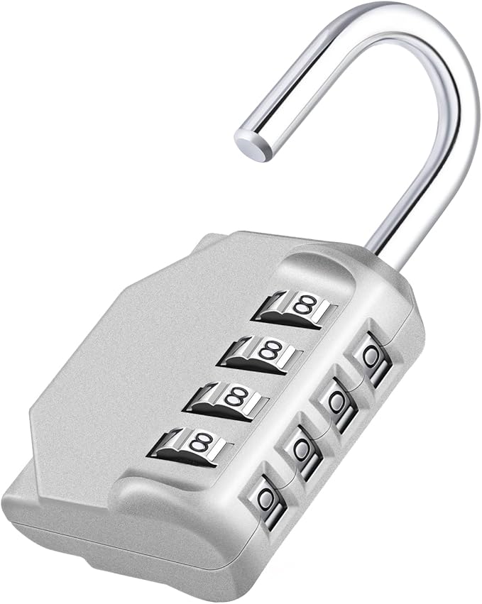 Candado de combinación reprogramable de 4 dígitos con cuerpo de aluminio macizo. Perfecto para asegurar trasteros, taquillas, cofres y maletas. Recomendado por empresas de seguros, fácil de usar sin llave y configurable según el usuario. Configuración: 4 dígitos, reprogramable.